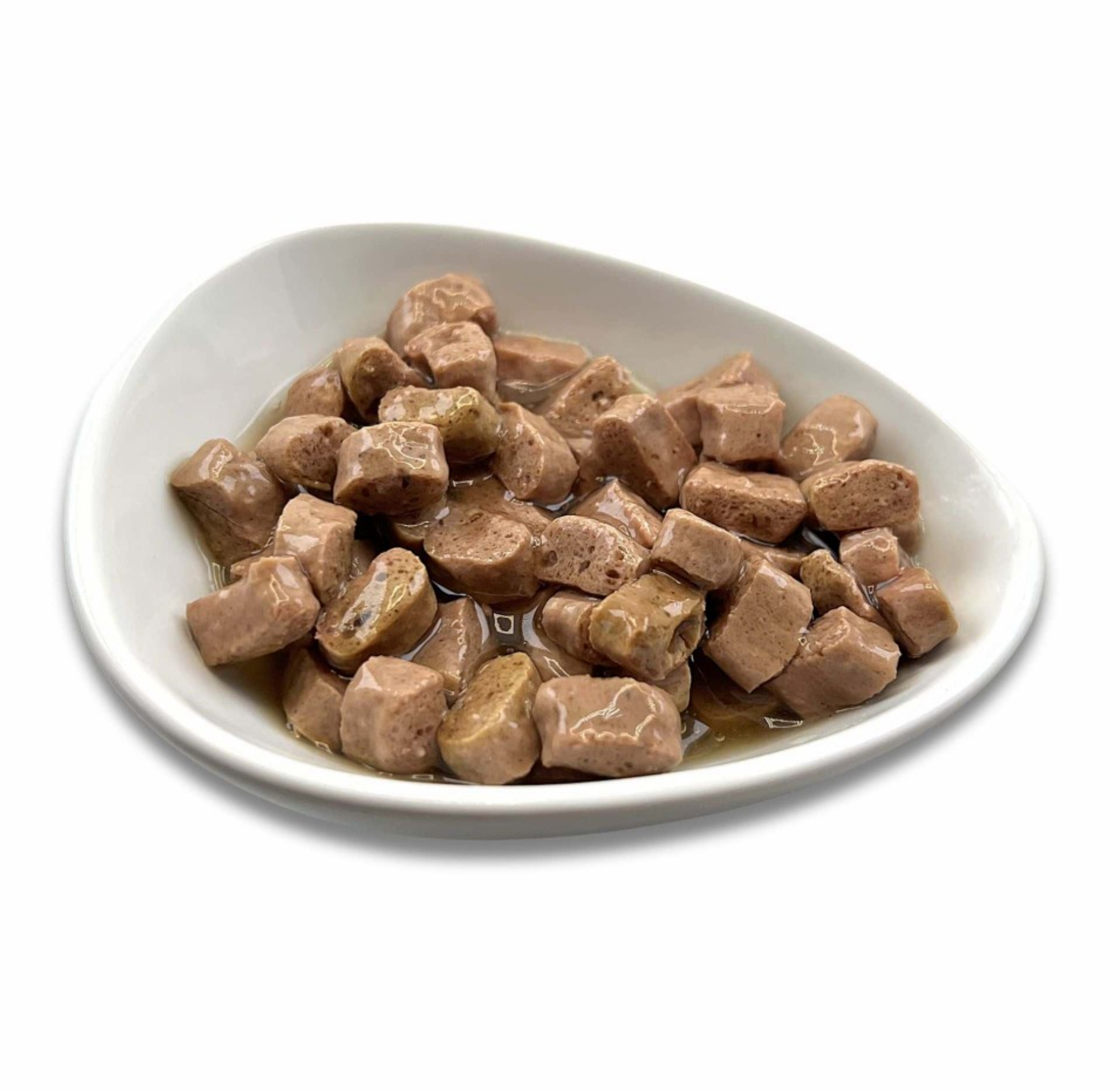 Servierfertig im 85 g Frischebeutel (Pouch). Vorzugsweise zimmerwarm füttern.